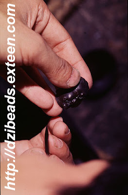 Softening a piece of wax over a brazier.