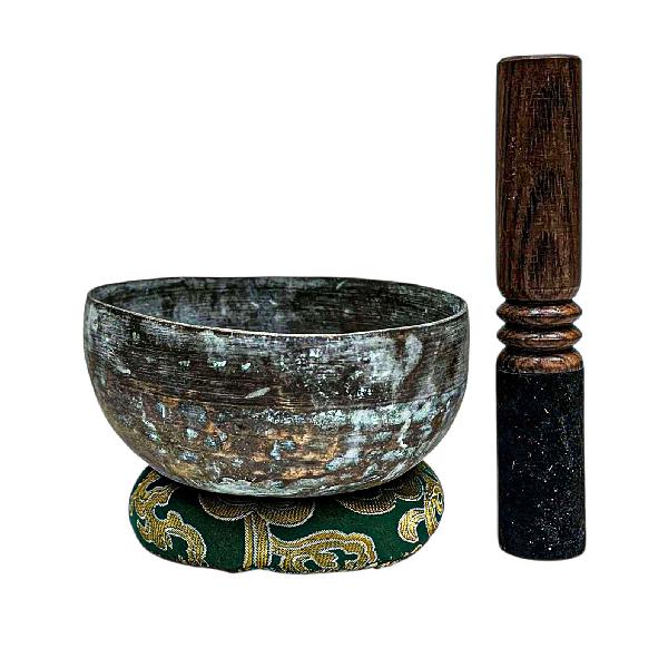 23cm Lingam Singing Bowl, Buddhist Hand Beaten, Antique Finishing, Select Accessories