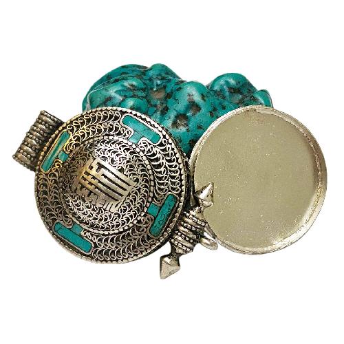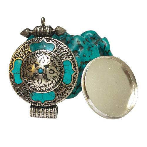 The Buddhist product called Ghau, Amulet and Box is a revered item in Tibetan Buddhism. Ghau boxes are used to hold precious amulets or sacred items, such as prayer scrolls or herbs, and are often decorated with intricate designs and precious materials. The Ghau box can be made of silver, wood, or other materials, and can be used as an altar box for use at home, or as a traveling altar box for use on the go. The amulets that can be placed inside the Ghau box come in a variety of forms, including printed amulets, metal amulets, thangka amulets, and more. These amulets are believed to bring blessings, protection, and positive energy to those who carry them