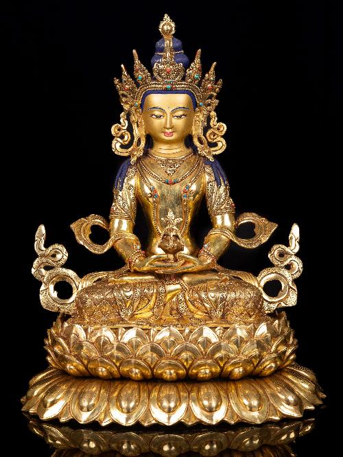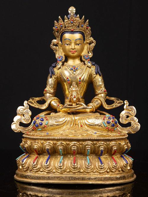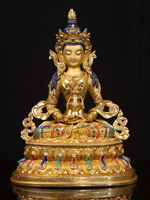 26cm Aparimita, Buddhist Handmade Statue, Full Gold Plated, Stone Setting, Face Painted