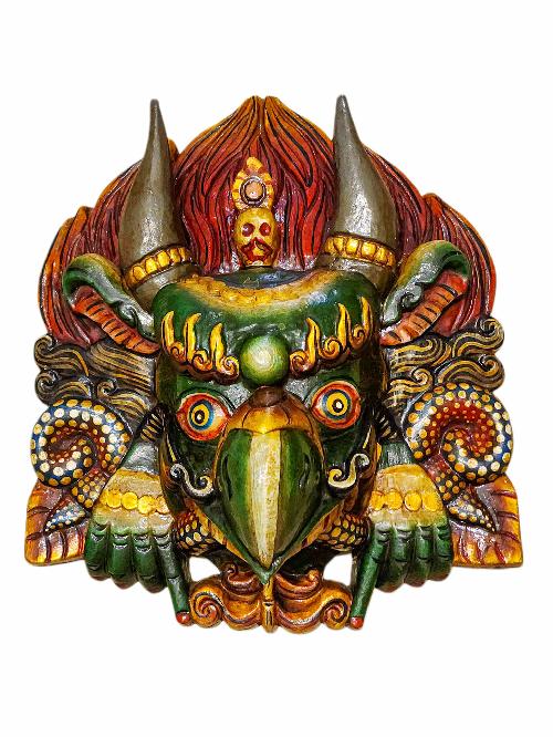 17cm Buddhist Wooden Mask With Garuda, Tibetan Style Wtih Traditional Colors