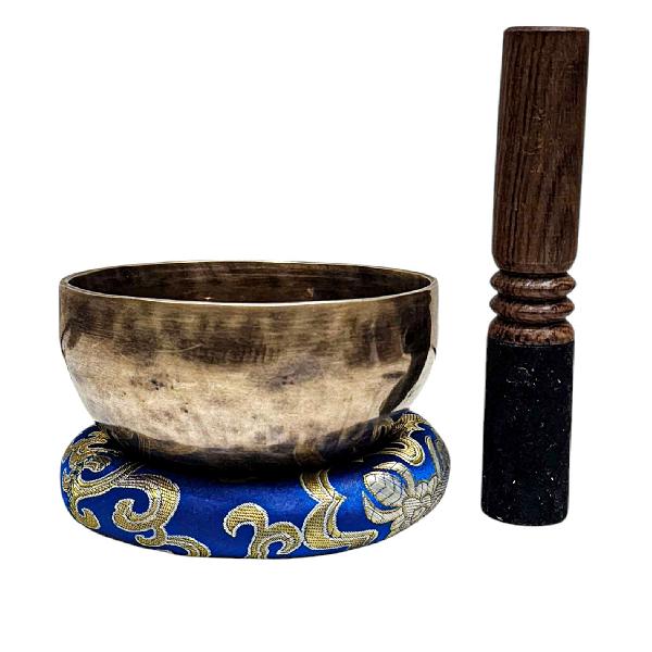 Buddhist Hand Beaten Jambati Singing Bowl, with Handle, Select Accessories
