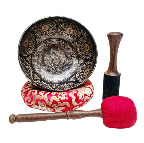 27cm Singing Bowl, Buddhist Hand Beaten, With Yoya Man Carved Inside, Select Accessories