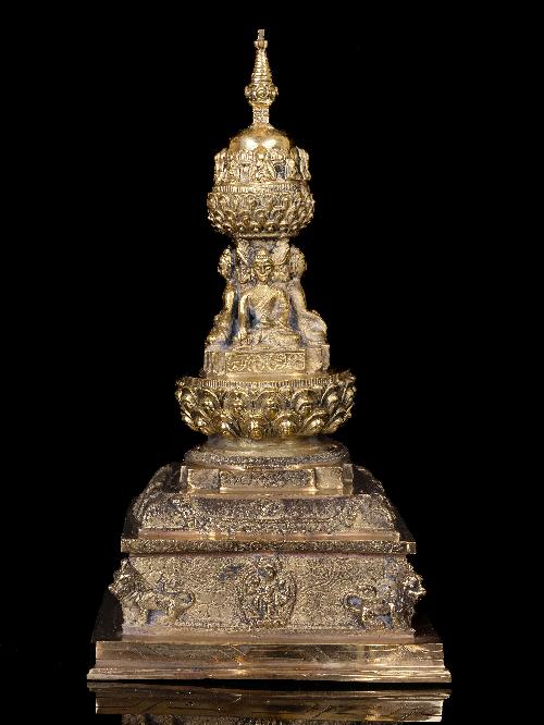 This Stupa of Eight Stupa is made by the process of the Lost Wax system. This is a very complicated, time consuming and historic process of making metal sculptures.Which is why it is sometimes called Precision Casting as well. Hence the sculptures made by this process are comparatively expensive. There are many new, advanced and less time consuming methods of casting metal sculptures available as well. But due to the benefits provided by the traditional lost wax system in quality control and customization, we prefer the Loss wax system over Ceramic molding, or sand casting to make our Stupa.