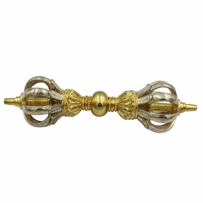 This is an antique patina-finished Double Dorje. This is not an antique statue. It is just an antique patina finish. This Double Dorje is a testament to the artisan's mastery of the art of aging. Its antique patina has been meticulously crafted to give the appearance of an aged statue, showcasing the artist's unique techniques and skills. Through undisclosed processes and careful aging treatments, the Double Dorje undergoes a transformation that captures the essence of time and history. Read More . . .