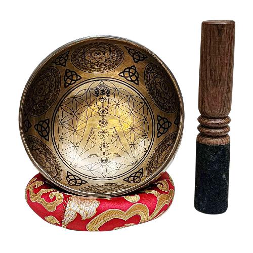 Fine Carving Singing Bowl Jambati, with Ashtamangala, Etching Carving, Select Accessories