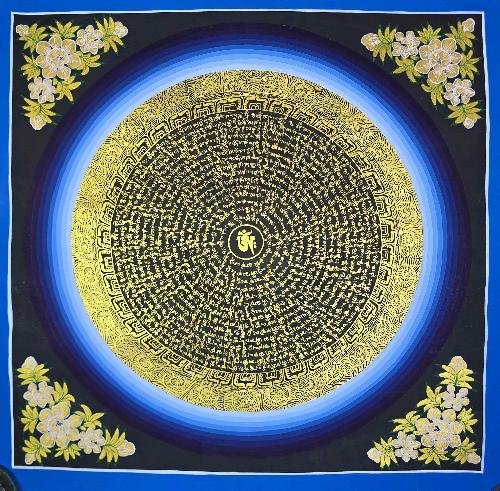 Hand Painted Tibetan Om Mani Padme Hum Mandala Thangka