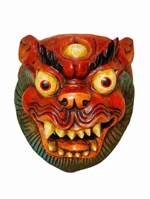 This 25cm tall Buddhist Wooden Mask Of Snow Lion, Tibetan Style Wtih Traditional Colors, Poplar Wood (Product Code: HMS35790) weighs 0.59kg and is available at an offer price of US$4.8.
