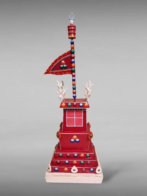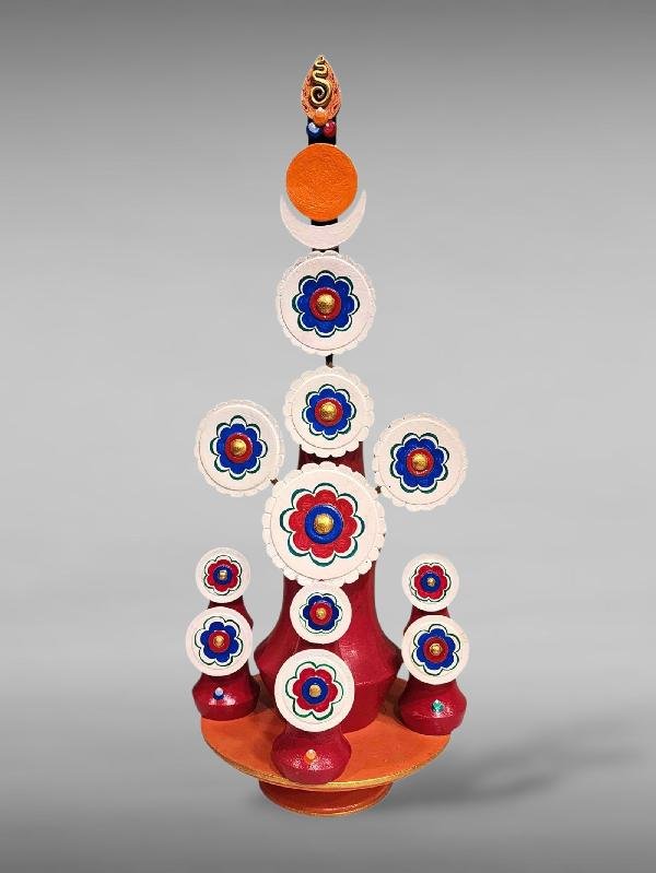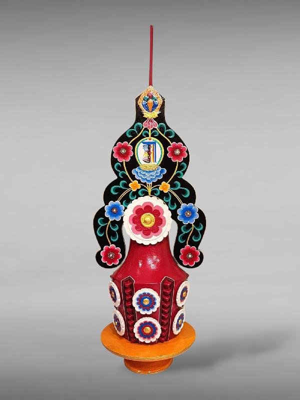 The Torma is adorned with traditional colors, creating a captivating aesthetic through a combination of gold and various hues. This painting technique follows a time-honored process that aims to faithfully represent the Torma in accordance with traditional color descriptions. In the context of Buddhist statues, this approach holds great significance. Each statue has its own primary color, and it is crucial to depict the statue in its authentic shade. Read More . . .