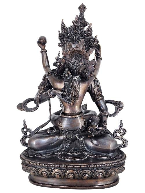 Padmasambhava Guru Rinpoche Shakti Yab Yum Statue Copper with Silver and Chocolate Oxidized Finish