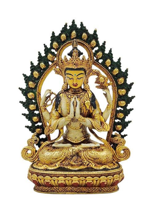 This Samantabhadra has finished in a full gold Plated antique patina. The Antique finishing imparts a sense of age and character to the Samantabhadra, enhancing its overall appeal. In the Antique finishing process, after the Gold plating is applied, a carefully applied layer of varnish is added. This varnish not only contributes to the antique look but also serves as a protective barrier, ensuring the longevity of the gold plating. It helps to safeguard the gold layer but also prevents tarnishing for an extended period. Read More . . .