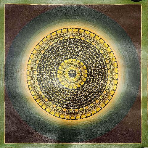 76cm Mantra Mandala, Buddhist Traditional Painting, Hand Painted, Real Gold